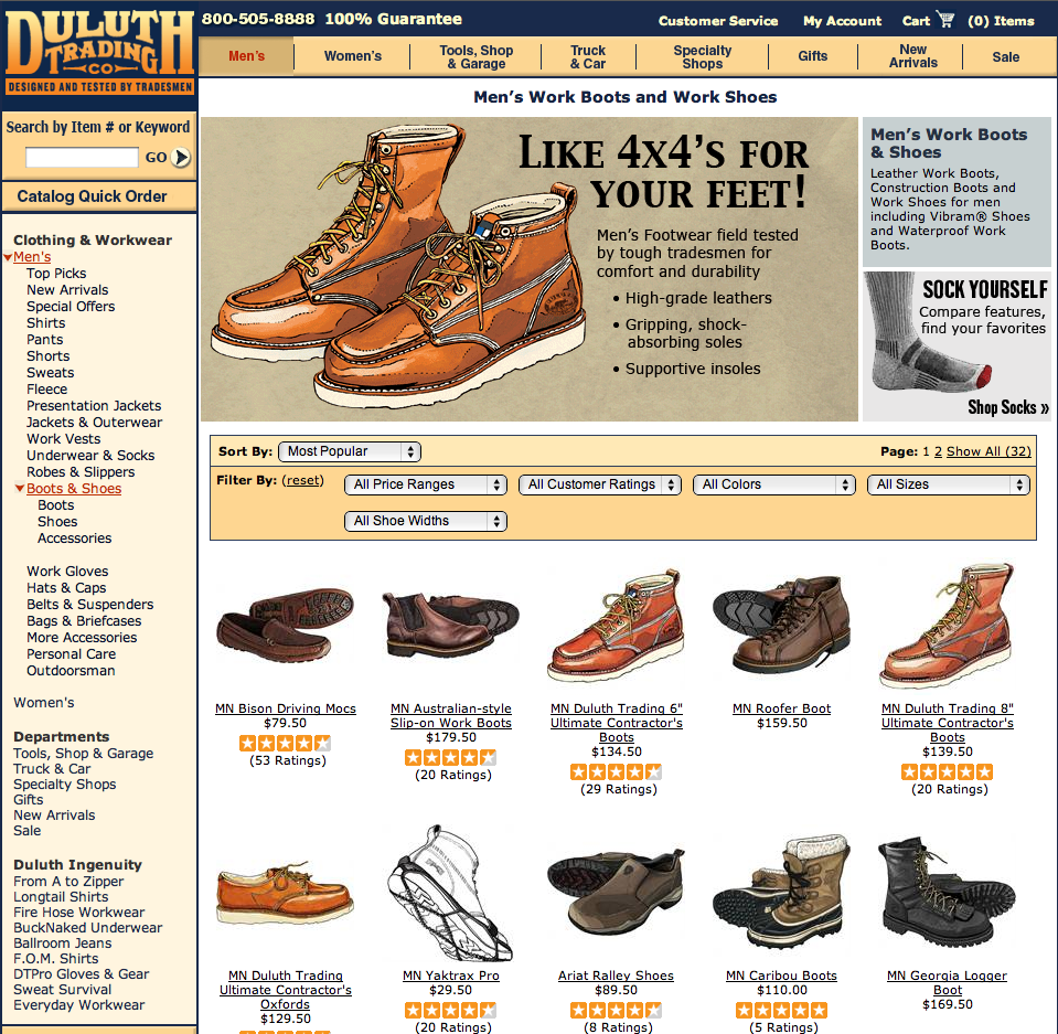 never found such an old-school progressiv, extraordinary online shop – against all trends. WOW – like it very much: less photos, no, nearly none photos, but excellent illustrations and, believe me, very funny videos. the stuff is very cheap – take the workboot section: compared to f.ex. workboots from WESCO, WHITES, DANNER or RED WING SHOES. and the best: believing the customers ratings the items they sell are really good quality products. ej