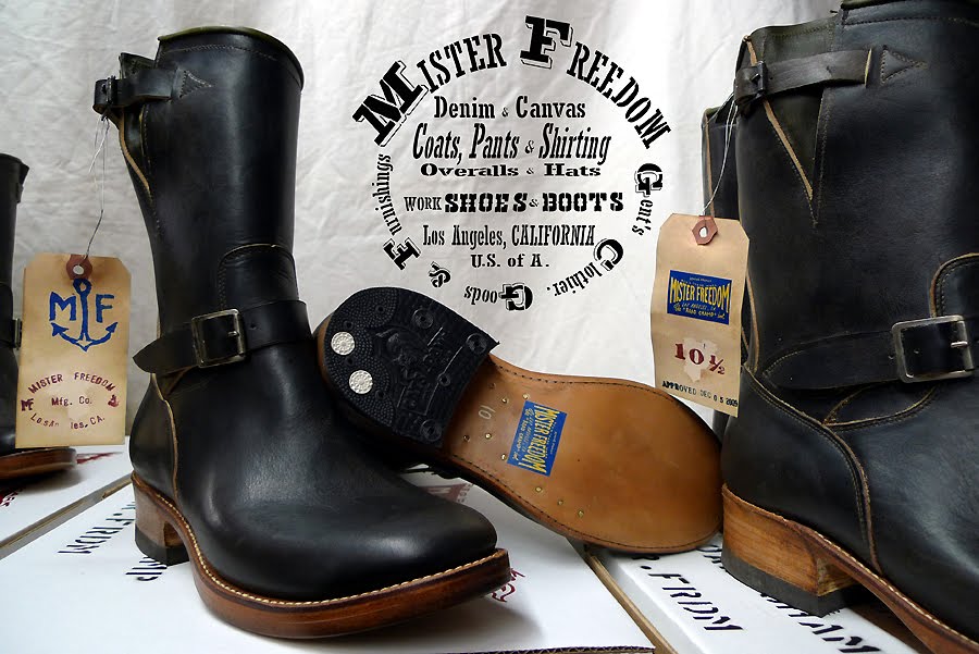 f***, what a great jacket compared to those shitty fashion biker stuff for all that pseudo McQueens and Brandos. i love the stuff of MISTER FREEDOM® and his interpretation of heritage, but it is so hard to get in germany. so, just join MISTER FREEDOMs blog and watch this great stuff. f.ex. the MULHOLLAND MASTER. it is a special US only limited edition. ok – it’s a pitty. BUT you safe 899.95 bucks. a good addition to this awesome jacket could be the “SPEED SAFE” MFSC Chino Rider: 1930’s slack silhoute, mid rise, 1940’s USAF specs Twill fabric, 100%, sand colour, domut metal crest suspender buttons and so much more. and watch out the “ROAD CHAMP“ Motor-Cycle boots, too … and, and, and … ej
