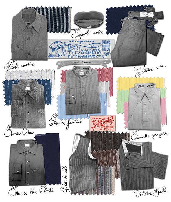“Métis” twill and indigo ticking. + fancy city clothes in intricately woven stripe cotton fabrics. for more