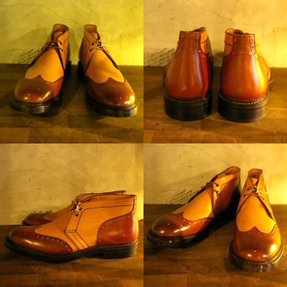 found at japanese MUSHMANS online shop. bad quality pics but very nice 2-tone-chukka boot. natural and brown colored. very smart. BUZZ RICKSON’S call this model A.ASSOCIATES CHUKKA BOOTS.