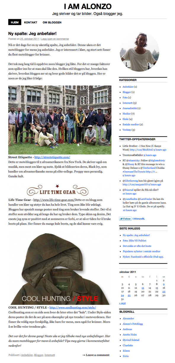 great honor to be mentioned in a post with famous blogs streetetiquette.com and coolhunting.com. it is a pity that i can’t read swedish – is it swedish or norse? but some parts i think i understand, for example “kule boots” … “vare evig” … and that sounds good. thanks I AM ALONZO