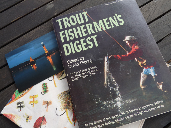 what a surprise: checking my postbox this morning i found a big letter. awesome, it was from ALEXANDER who does the great be-cause – style, travle, collecting and food blog. some time ago we mailed about fly-fishing, and now he sent me a postcard from BODENSEE region and this wonderful vintage TROUT FISHERMEN’S DIGEST book. i love it, alex! great pictures, i think from sixties and seventies, and great stories. thank you so much. hope, to meet you some day; i think we could make this happen. bad pic | LTG, bandana with fly-fishing flasher from volls.de