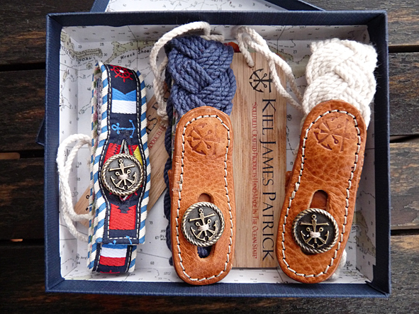 yesterday i got my order from KIEL JAMES PATRICK: so beautiful. these bracelets are one of my most awesome accessories i own. and the package was so nice packed. i love this marine inspired stuff. so i took 3 bracelets, and this was a good decision, because my wife told me that she will wear them, too – ok. i got two “LEATHER TURK’S KNOP ROPE” and one “CAPE & BRIGHTON BEACH”, which is my favorite; it is called “CUTTY SARK ATLANTIC”. all stuff is hand crafted in RHODE ISLAND, usa. pics | LTG | kieljamespatrick.com