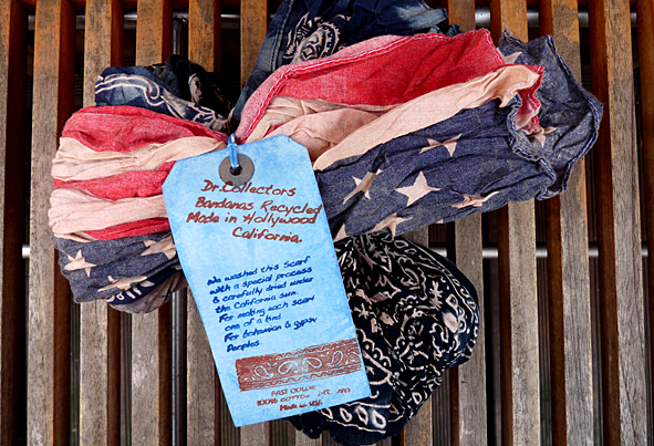 visiting KLAUS two days ago to talk aboput a new ad for volls he showed me a new label: Dr.Collectors. directly from the box KLAUS gave me awesome BANDANA SCARFS. great idea by L.A. located brnad: “We have always been fascinated by vintage American clothing and collectors., After a Sunday at the Rose Bowl flea market looking for old bandanas, we arrived at home and opened the big bag of Bandanas and we started ordering them by color,  we suddenly had an idea: ​To ​sew the bandanas together to build a scarf Dr.Collectors. Although the scarves appeared still too new, we washed the scarf with a special process and carefully dried it under the California sun., This is how the scarves Dr.Collectors were born!” and they do much more than bandanas: check their site! pics | by LTG & Dr.Collector