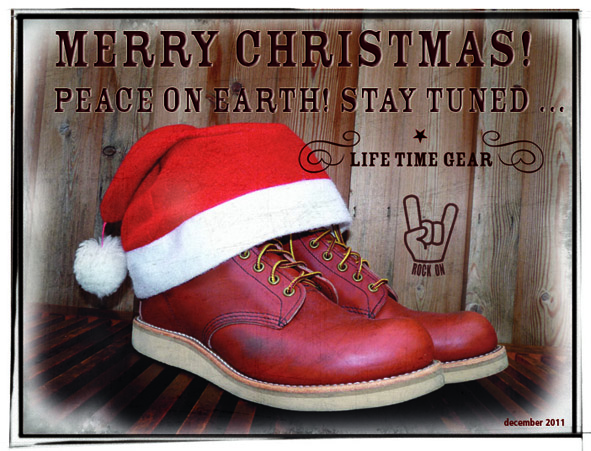 24. December 2011 by lifetimegear CHRISTMAS GREETINGS FROM LIFE TIME GEAR Image Allgemein Life Time Gear, Red Wing Shoes Leave a comment Share this: Click to share on X (Opens in new window) X Click to share on Facebook (Opens in new window) Facebook More Click to print (Opens in new window) Print Like Loading... Related