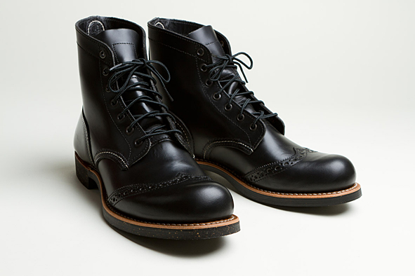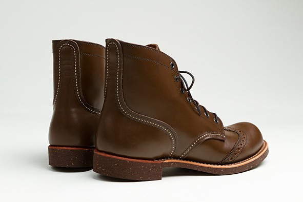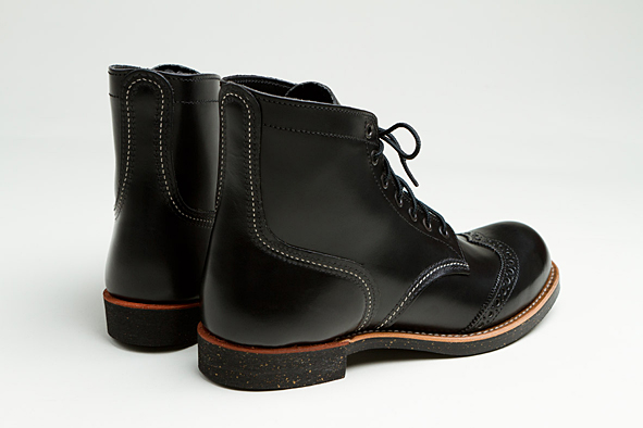 more really fresh news from the RED WING HERITAGE central europe reached me last night. WHAT A NICE BOOT!!! the RED WING STYLES 8126 & 8127. damn, they look so pretty. great combination: an IRON RANGER with a brogue or working goes chic. i am sure, these boots will be very successful. this is what RWS tells about these styles: “The 6-inch full brogue was first designed as a country walking shoe specifically created for use when crossing wetlands and bogs. For the people in Red Wing and the surrounding areas heading outside often meant trekking through the Minnesota wetlands and river basins. People needed a boot that could withstand constant exposure to water and a boot that when wet would not break down and hurt a person’s feet. The first people to wear brogues were farmers and gamekeepers. Small perforations were crafted into the leather of the toecaps, and quarters of the boot. This design allowed water to drain and the boot to dry at a quickened pace. The perforations, were only punched through the outer layer of the doubled-layered portions of the boots so that the weather resistance of the uppers was not compromised.” available in europe and the US fall 2012. pics | Red Wing Heritage, Europe