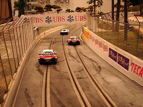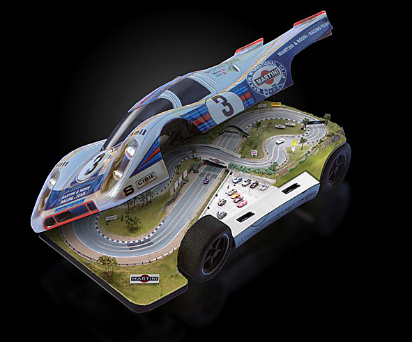 since i am a child i love playing with CARRERA. my little sun has a track from the “GO!” series. a special ”DISNEY’S CAR” edition. but i think he is a bit to young. he prefers playing table football and with lego bricks. for me a CARRERA race track still means passion and emotion. i think the day will come when i race with my sun round per round through the living room … but look at this perfect track in a box. isn’t that a great idea? so awesome: and take a look at the details from other racetracks below. even skid marks are on the “road”. those tracks are built by american SLOT MODS: “Museum quality, hand crafted raceways for the ultimate garage, showroom, man cave or commercial interactive attraction.” unbelievable. check their site if you have an affection to raceway playing – it is an absolut must! fascinating! thx PeZi for the hint at spiegel.de where i found these blog pics. if you take a look at SLOTMODS.com you’ll find countless pics from different racetracks and cars, informations about the builders and their clients. pics & vid | SLOT MODS