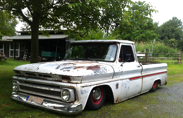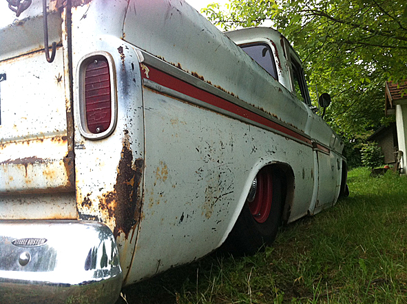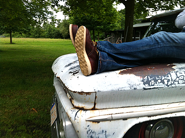 he STEVEN W. thx for the nice iphone pics you send me last night! and this pics are not somewhere from TENNESSEE, MISSISSIPPI or ALABAMA, they are from somewhere at BERGSTRASSE in the middle of germany. damn fucking nice CHEVY C10, built in 1964 with a 320 PS machine – sorry, but STEVEN didn’t gave me more facts with the iphone pics. soooooooooooooooooo low. and i wrote that it would be a mission impossible to drive such a thing on german roads. okay this rugged beauty has red number plates, hm, maybe someone from german TÜV driving this car – a joke! strange, this is the second post about a low C10 in one week. STEVEN, maybe you can send me some more pics and informations about the owner of this awesome truck. and beside, your RED WING 8109 or 8138, i can’t identify because of your denim covering the bootleg – oxford or boot? – fits the rusty engine hood perfect. stay tuned STEVEN! and what’s about your boot collection? your portrait? … pics | Steven Weiland with iPhone