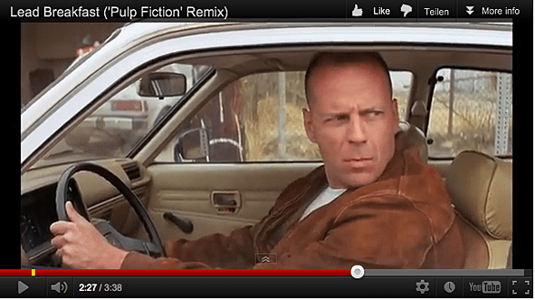 23. June 2012 by lifetimegear LEAD BREAKFAST | PULP FICTION SAMPLED & REMIXED Allgemein Pulp Fiction Leave a comment very well done. not my music but a must watch at – it is the cut and the mix which make this video so interesting even if you see PULP FICTION several times. enjoy – nice weekend. remix & cut | POGO Share this: Click to share on X (Opens in new window) X Click to share on Facebook (Opens in new window) Facebook More Click to print (Opens in new window) Print Like Loading... Related
