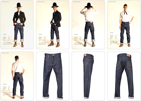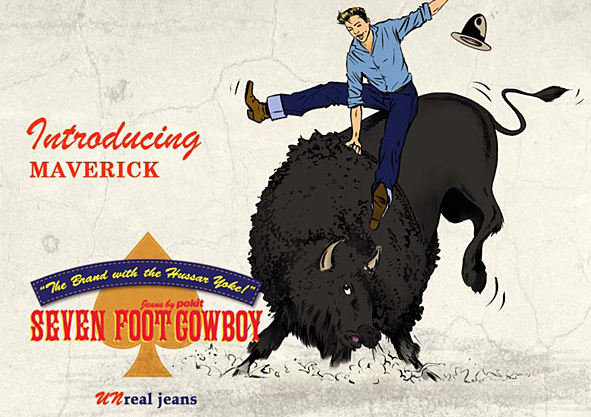 when i entered the stall of SEVEN FOOT COWBOY at B&B 2012 there were just a few seconds to change business cards with the staff and the promise to come back the next day. the stall was looking great, an eye catcher for some one like me who loves cowboy style and the old american west. but the day after i couldn’t manage to go again there and so i was very happy that CLAIRE sent me some informations via mail – thx for that! because it would be a pity not tell all the people about this young creative british brand. here just some short informations, for more visit www.sevenfootcowboy.com . all jeans are manufactured in lancashire, england, from premium japanese denim. every pair is designed with a looser stitched curved seam along the seat. the “HUSSAR YOKE” sewn with variable tension construction gives a little ease making the jeans more comfortable to wear. check the video below “making jeans”. there are seven styles and i like especially the “MAVERICK”. the other styles are really special and unusual in their design but always with an old school western attitude. there is even some denim and a skirt for the girls. exciting to see, which way the SEVEN FOOT COWBOYS will go … pics & vid | SEVEN FOOT COWBOY, pokit