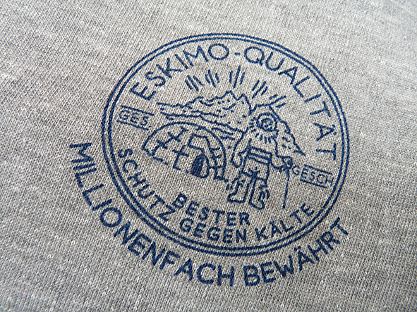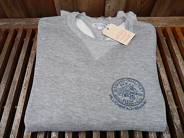 today i went to KLAUS @ volls.de just for a visit. but it is always the same on these fridays. after a hard working week, having about one hour to hang around @ volls it is so difficult not to buy something in this relaxed good mood. this day it took the MERZ B SCHWANEN sweater with the eskimo vintage print “ESKIMO QUALITÄT” with me. what a wonderful germany made piece of 100% cotton, rib trinagle insert on front and back and triangle inserts under the sleeve in a clasic greymelange. awesome like all the MERZ B. SCHWANEN stuff. all styles, shirts and long sleeves, are so well done and you feel the love to the product PETER and DIRK take to their collections. pics | LTG