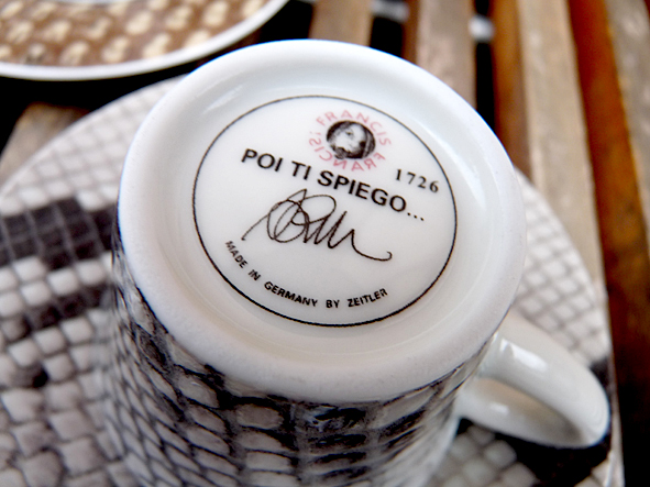 everyday i consume masses of espresso and coffee. from the morning to the noon milk coffee and cappuccinos and in the afternoon lots of espresso. so i have some favorite cups. as an exotic western boot lover i mostly like my vintage ZEITLER SNAKE EXOTIC espresso cups, i think meanwhile they are about 15 years old. and below there are just 3 sets of 6! the MUSTACHE CUPS by PETER IBRUEGGER are great too and really funny seeing others using them. check PETER’s site, there are more ideas about mustache cups and glasses. the massive CHICAGO cup is also awesome – it was a souvenir from FRED c/o redwing.1905.blog. pics | LTG | Peter Ibruegger