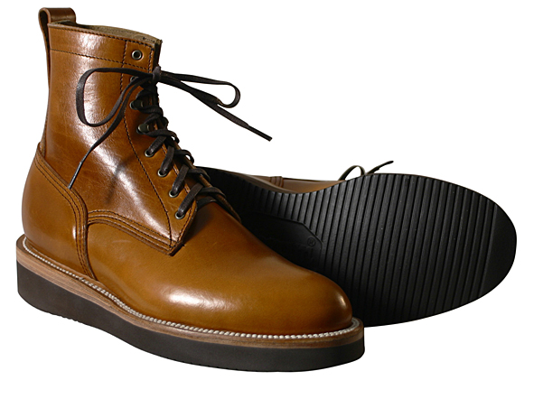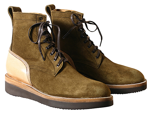 volls.de got a new delivery from YUKETEN. some new boots and very nice bags. there is a new boot i never saw before: the PLAIN TOE UTILITY BOOT in moss suede with a white contrast heel cap. a great color combination which is completed by one of my favorite VIBRAM soles: the # 2021 in grey brown. beside the suede version of this UTILITY BOOT there is another boot in a chestnut brown smooth leather also with the #2021 sole. this boot looks a bit smarter and classic. pics | volls.de
