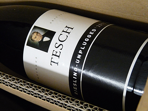 it is sunday and i am working like everyday since the last – i don’t know – weeks. but i had to do a break this afternoon. two weeks ago i got a new delivery from my favorite vineyard TESCH: some boxes RIESLING UNPLUGGED and WEISSES RAUSCHEN. this wine once was created by MARTIN TESCH as the tour wine of the DIE TOTEN HOSEN. both RIESLINGs i love so much because of their extremely pure, straight and fresh taste – even in winter! okay, i did a break and went to my wine cellar to put out the bottles of the boxes and sort them into my wine rack. this sort of work i love! nice detail: the box with WEISSES RAUSCHEN was closed with a KAUF MICH tape, the title of a vintage DIE TOTEN HOSEN album – very nice. and: CONGRATULATIONS TO TESCH because of decorated as WINEMAKER OF THE YEAR 2012/2013 by FRANKFURTER ALLGEMEINE. absolutely deserved! break is over now. and for this evening i took a bootle of UNPLUGGED 2011 with me. pics | LTG