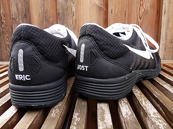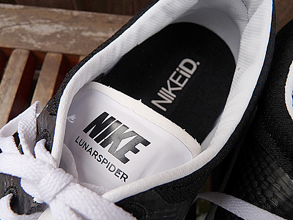 after breaking the 1.000 km bound yesterday i can wear my next pair of NIKE ID with the next run. i got these black LunarSpider LT 2 iD last week but i did not open the box before yesterday. every 500 km i allow myself a new pair of this great shit. i like it to own a pair of running shoes with my own name on it. after the bright orange NIKE iD it must be a black one now. this lightweight high tech running shoe looks in this b/w color combination a bit old school – nice. for this 1.000 km i just needed 9.5 months. when you will see the next NIKE iD the next 500 km will be done … pics | LTG