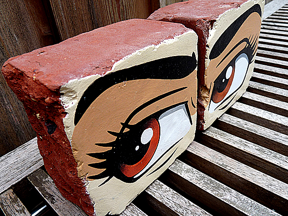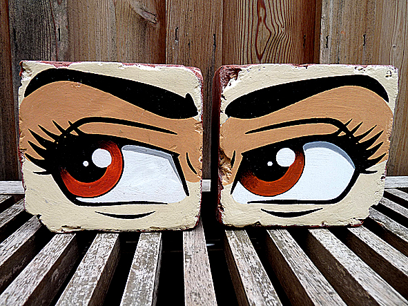 love this pop art LICHTENSTEIN style. yesterday we found these nice hand painted vintage bricks at a local art market where most stuff was incredible fucking terrible. but this pieces hand made by graphic designer  WOLFGANG SCHINKEL are really nice and a good idea too. we decided to take a pair of eyes. check his dawanda shop FANCY THAT!. pics | LTG & W. Schinkel