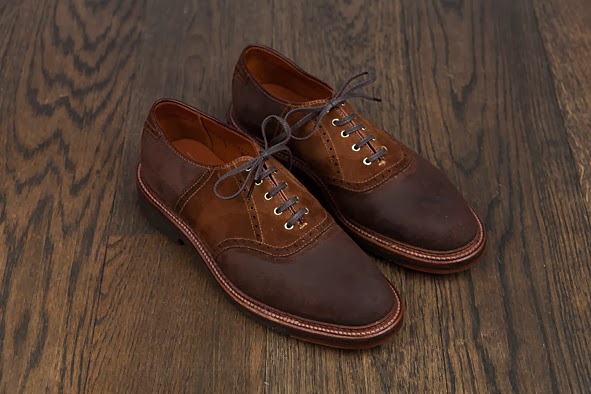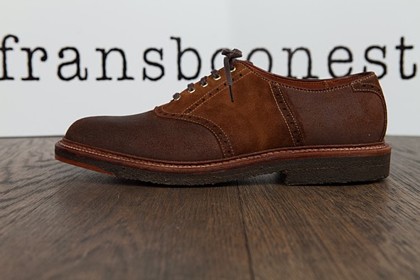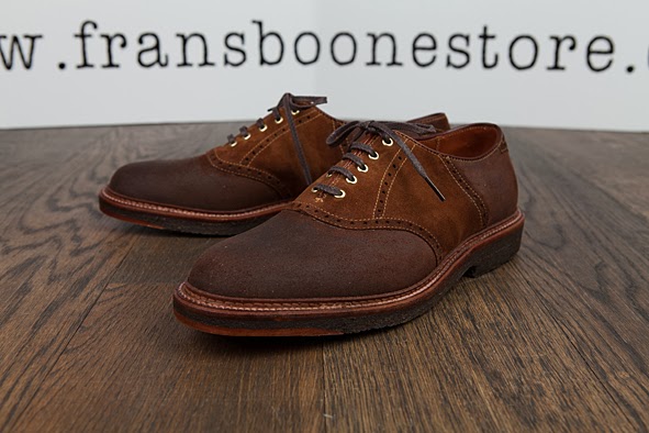 so, definitely: this is the nicest, coolest and at the same time smartest saddle shoe i ever saw. respect to FRANS BOONE who did this awesome piece together with ALDEN. i think this style, this combination in design and leathers must be really exclusive – at least i never saw before. this ALDEN shoe features the following characteristics: snuff suede saddle and heel part, vamp and quarters in reversed tobacco chamois, brass eyelets, cordo hyde flat laces, plantation crepe outsole, barrie last D width. it would be an amazing, awesome part of my boot & shoe collection, but the price is the price an ALDEN costs. so my rationality is fighting against the passion. it’s an exciting match! wonderful pics | © FRANS BOONE