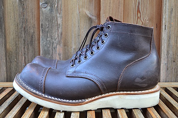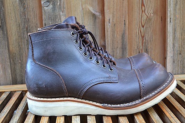 2 months ago i did a post about my VIBERG SERVICE BOOT 1950 in black with a DAINITE SOLE. todays #26 boot of my collection is the same boot just brown colored with another sole, the WHITE CRISTY VIBRAM 4014. as the pics show, i did not wear this boot so often. i prefer the black SERVICE BOOT with its DAINITE SOLE much more. i think this sole fits the look of the boot much better. the #4014 is comfortable but it looks like a contemporary compromise to me. when i wear this boot sometimes i think if i wear a hybrid between a RED WING BOOT and a VIBERG. for sure this VIBERG SERVICE BOOT is a really perfect and best made boot but not my favorite one. if it might be yours, you can get it @ volls.de. pics | LTG