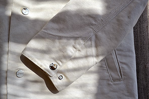 Nice: sold out … @ the WIP CARHARTT online store for Europe this wonderful jacket isn’t available anymore – I like this, because I own on – ha! In spite of the 100% 12oz “Dearborn” canvas the jacket is really smooth and perfect for those early summer days especially in the morning and late evenings. I love the handmade painted and coated “PUTTY” style – it looks so one-of-a-kind a like. Take a look at the snaps and the special “square label”. This is a collaboration that works! Do you know SLAM JAM? Here just a few facts – you’ll find more about @ the WIP Page: “… For the past twenty-five years, Slam Jam have been eagerly exploring the world, listening, observing, intercepting trends, editing and mixing them up. The result is a bridge that joins streetwear and fashion. Music, visual arts and the energy from underground cultures have always been the fuel for Slam Jam’s engine. A childlike enthusiasm for this world made the rest. …” Beside the “PUTTY” range you’ll find two other styles. Check it out … This stuff is really special! pics | LTG