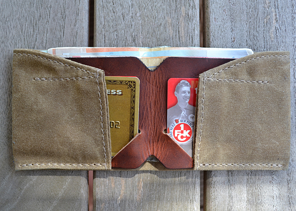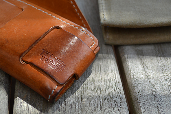 What a lucky break. When visiting KAMI c/o B74 in Frankfurt some days ago, i found this nice little wallet lying in a glass cabinet. Didn’t noticed this TANNER GOODS classic before. It is their so called “WORKADAY WALLET” with enough space for many banknotes and a lot of cards. Great to put this little thing in the back pocket of your denim or chino. It is combined with waxed canvas and smooth leather. KAMI told me that there was a special edition which combined leather with this f***ing nice flashy orange hunting canvas. If anyone still has one of these please send me a message – thx. Isn’t the combination with my vintage TANNER GOODS card holder great? I wanna use the WW just for notes, not for cards. The other WW is owned by KAMI. He has his WW in use for about one year. Kami has left some wallets – if you can’t get your WORKADAY WALLET there please check the European distributors website: www.amtraq.com pics | LTG
