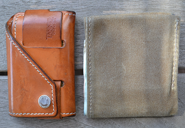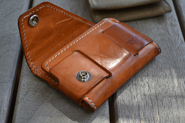 What a lucky break. When visiting KAMI c/o B74 in Frankfurt some days ago, i found this nice little wallet lying in a glass cabinet. Didn’t noticed this TANNER GOODS classic before. It is their so called “WORKADAY WALLET” with enough space for many banknotes and a lot of cards. Great to put this little thing in the back pocket of your denim or chino. It is combined with waxed canvas and smooth leather. KAMI told me that there was a special edition which combined leather with this f***ing nice flashy orange hunting canvas. If anyone still has one of these please send me a message – thx. Isn’t the combination with my vintage TANNER GOODS card holder great? I wanna use the WW just for notes, not for cards. The other WW is owned by KAMI. He has his WW in use for about one year. Kami has left some wallets – if you can’t get your WORKADAY WALLET there please check the European distributors website: www.amtraq.com pics | LTG