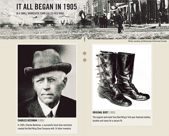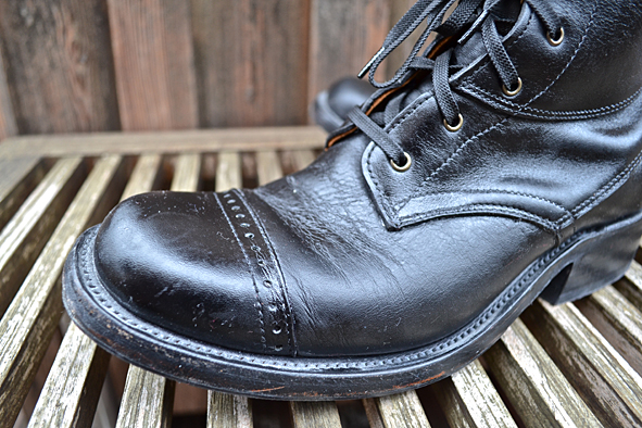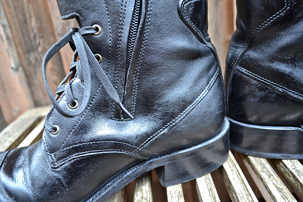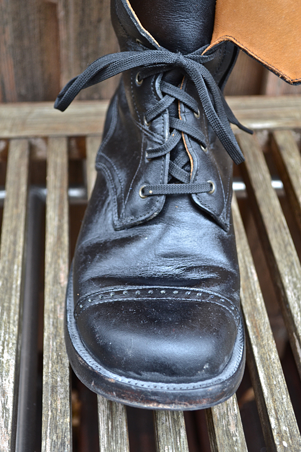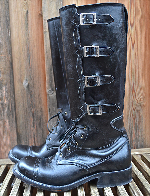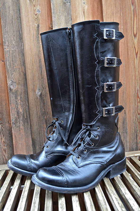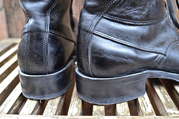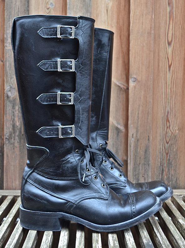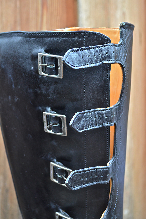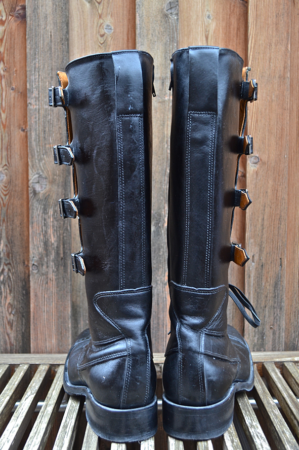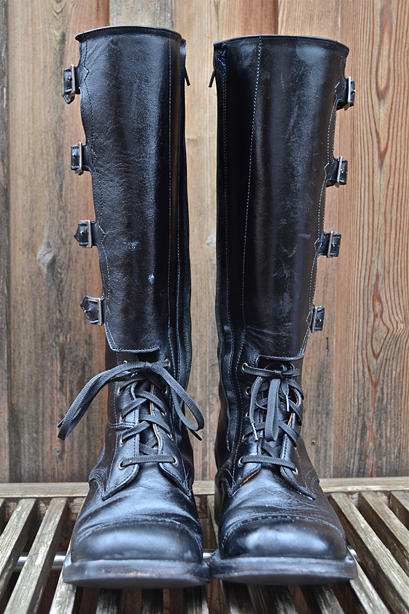By cleaning up my boot closet I found this black beauty. Damn, this boot is so nice but my wife didn’t wear it for a long time and will not wear it anymore. This is not her boot style – she prefers the RWS Moc Toes and Chelseas. I bought this rare piece from RED WING SHOES in 2005 at Red WING SHOES Frankfurt, Germany. The model number is #850. They produced just a very small and limited run of these for the 100th birthday of RWS, I think to remember. Now I must give it away because I need more space for other boots I got the last time for my collection. Tomorrow I will give the boot to KAMI, owner of Red Wing Store Frankfurt, and we will show it @ the B74 Vintage Sale on Saturday 14th. Maybe I will sell it or Kami will take it to his magic archive. We will see … I can’t calm down seeing this boot for the first time again after some years: what an awesome boot! And it is a really good and original Replica compared to the picture of the “ORIGINAL BOOT” from 1905. The original work boot first year featured leather, buckles and laces for a secure fit. The Replica has a Zipper inside because closing all these buckles needs a lot of energy and patience. photos | LTG || historical pictures | @Red Wing Heritage