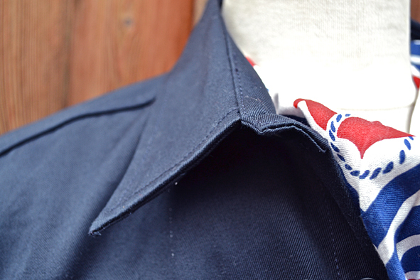 Damn, aren’t these nice? This week Uwe E. Mair c/o AMTRAQ DISTRIBUTION gave me the new SINGLE POCKET LONG SLEEVE SHIRT by TELLASON in two different versions. The shirt is based on a dress shirt from the 1950s which TONY PATELLA, founder and co-owner of TELLASAON, got in his vintage collection. I love this authentic old-school look, with that big, masculine collar, one front pocket and the “heavy duty” finish. The dark navy one is made of an unwashed 7.5oz twill from japan. Take a look at the Corozo (ivory nut) buttons – so nice. The stripped shirt is made of a Cone Mills White Oak vintage reproduction 100% cotton fabric. Its look is smarter and the wear is it too … not so heavy duty. The fabric has a softer touch – very comfortable and a great look with its stripes. Same cut, but tow different wonderful shirts – both Made in San Francisco, California. For your last xmas buys check the TELLASON site. In Switzerland call or write to VMC and in Germany B74, Riders Room, Jeanslife, Denim&Iron, Bube&König, John Tweed and great Gentlemen’s Skateshop. By the way, the orange bandana is also from TELLASON, the red/white/blue one from Joe McCoy and the vests are made by JackKnife. pics | LTG
