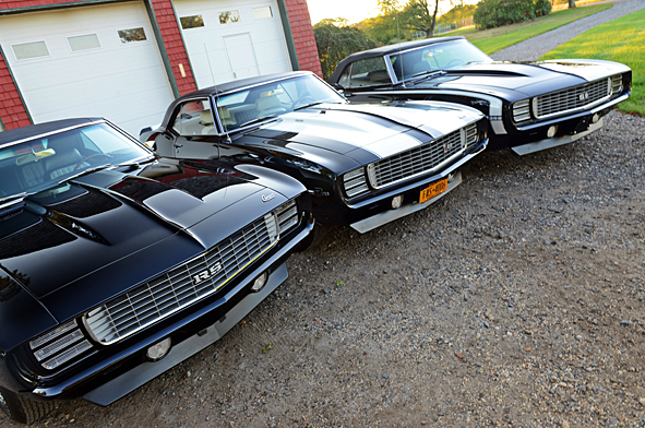 “Car aficionado and all-around GM guy Steve Shauger has collected quite a few Chevy pony cars in his day, but he insists the 1969 model is the best. In his search for the greatest Camaros ever built, he has corralled these three stunners, all glazed in Code 10 Tuxedo Black paint. Only 1.7 percent of the Camaros built that year wore that particular code on their flanks, adding to the hue’s rarity.”