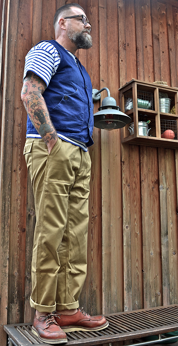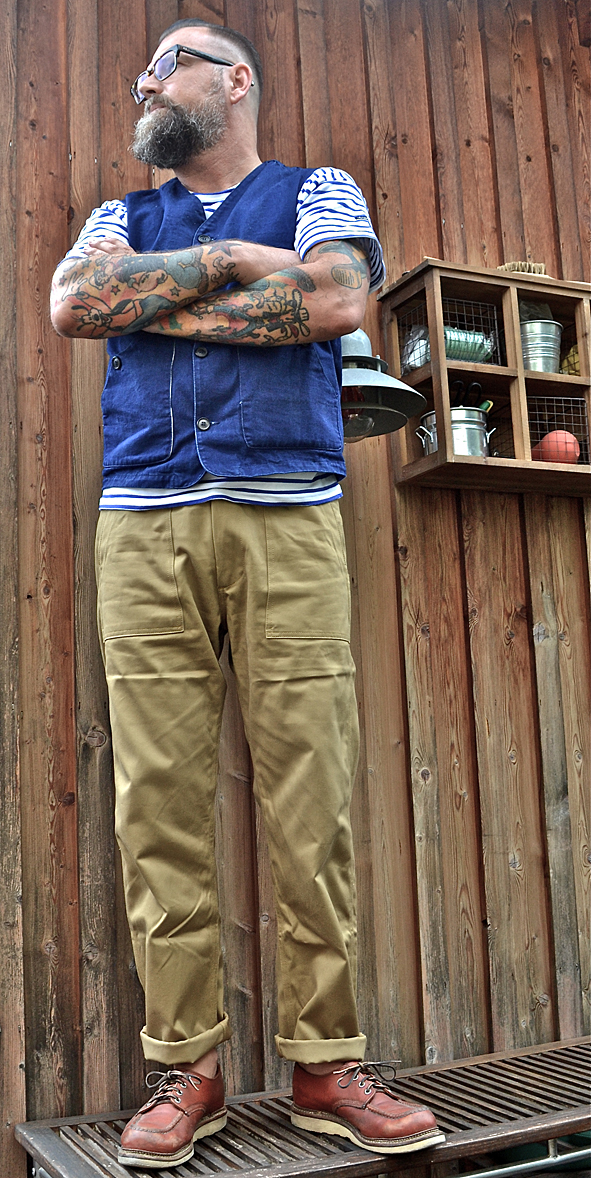 In February 2016 I wrote a blog post about 2 TELLASON Fatigue pants made of 8.5 oz cotton sateen in Olive Green and Khaki. These 2 pants where my constant companions this summer. The guys @ TELLASON now did a third Fatigue Pant, which is even smoother than the first I got. I love this touch and feel from the first moment on I tried this pant. It is TELLASON’s take on the iconic OD-107 fatigue pant from the Vietnam area. The new Fatigue comes in 7.5 oz 100% cotton twill from Japan, raw and unwashed, but so comfortable. With a tapered leg, zip fly, flap back pockets. For sure made in San Francisco. For more information check the AMTRAQ site for dealers where to buy this nice TELLASON stuff or contact Kami @ B74. pics | LTG