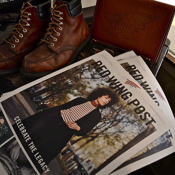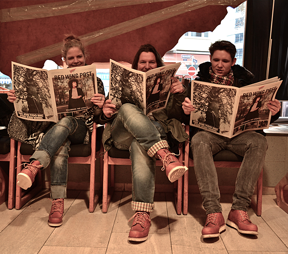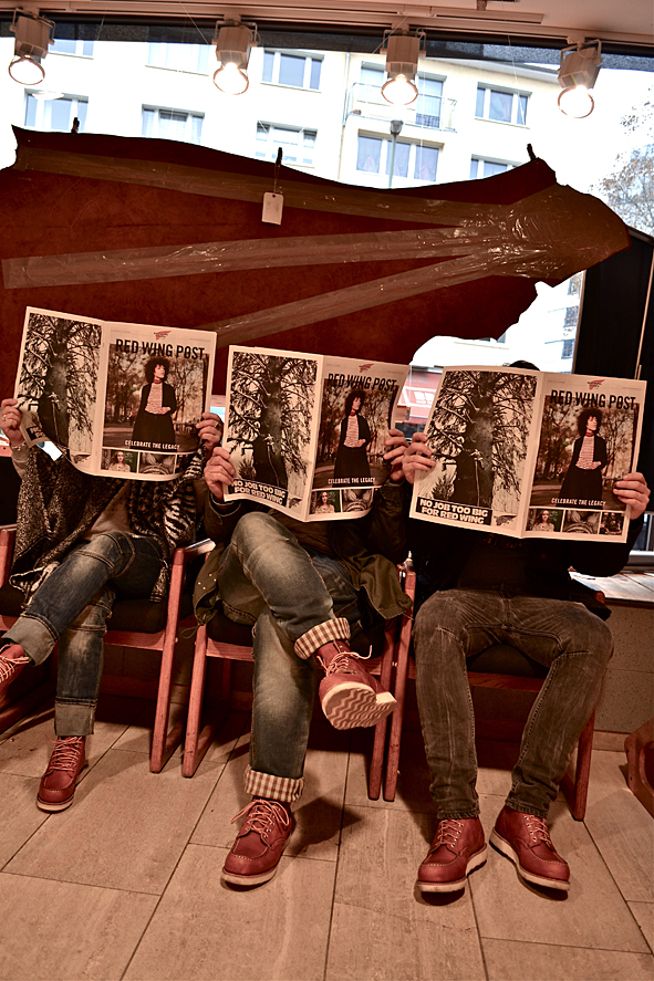 Red Wing Shoe Store Frankfurt keeps the new RED WING POST Issue No. 03 for you in the store. Full of nice stories, portraits, insider information and a lot of pictures about our common love & passion Red Wing Shoes. There is an interesting focus on “The Women’s Collection” and a wonderful poster in the middle of this issue. Don’t forget “THE COLLECTOR” interview done with a good friend Kay Knippschild from Red Wing Berlin – amazing what he has to say about his “The Archive”. Red Wing Shoes aficionados don’t miss your free copy at Red Wing Shoe Store Frankfurt. Come an d get it! And thx to these three customers that I could do some shots. They where so happy to get the RW Post. The ladiy and the guy on the right are just new RWS customers and got infected from this passion from the first steps on. pics | LTG