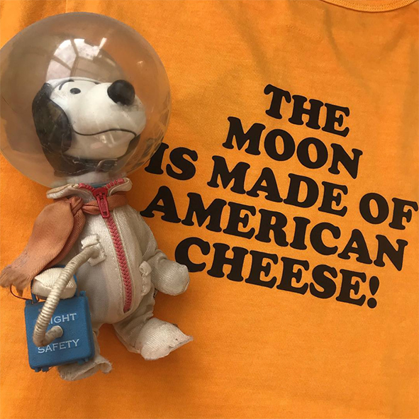 TSPTR launched its “SPACE RACE 1969” collection just a few days ago. So nice t-shirts and sweater with Snoopy prints dedicated to these days in the spring of 1969. Here some historic facts which made the new special collection happen. TSPTR ›› “Just before the first man landed on the moon, Charlie Brown and Snoopy soared through space with NASA’s Apollo 10 mission in May 1969. It is difficult to imagine the excitement that the race for the moon invoked fifty years ago. As the decade of the 1960s was coming to a close, America and the rest of the world waited with great anticipation to see if NASA could achieve President John F. Kennedy’s challenge, put forth in May 1961, of putting a man on the moon by the end of the decade. Consequently, it was a very great honor, indeed, when the crew of Apollo 10 chose to nickname their command and lunar modules Charlie Brown and Snoopy, respectively. The flight of Apollo 10 in May 1969 was the “dress rehearsal” for the lunar landing that was scheduled for July 1969. Astronauts Thomas Stafford and Eugene Cernan piloted “Snoopy” within 50,000 feet of the lunar surface as they scouted the landing area for Apollo 11while John Young orbited the moon in the command module “Charlie Brown.” Charles Schulz’s involvement with NASA began a year earlier than the 1969 flight of Apollo 10 when he was approached by NASA with a request to use Snoopy as their safety mascot. The Silver Snoopy Award program was instituted to improve the safety record of NASA employees and contractors. It proved to be a huge success with the astronauts and the employees. The Silver Snoopy pin is a much-coveted award. Snoopy has been on the job for 50 plus years and continues to this day in his role as NASA’s safety mascot.” The stuff is available @ the TSPTR Webstore. Check it, because the stuff shown at LTG Blog is just a small selection. For me as a great Snoopy fan – I own a Snoopy in real 😉 – a must have: the “First Beagle On the Moon! Flight Safe!” t-shirt and sweater.