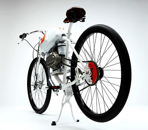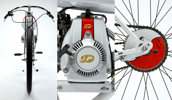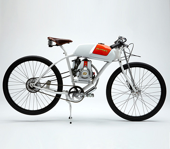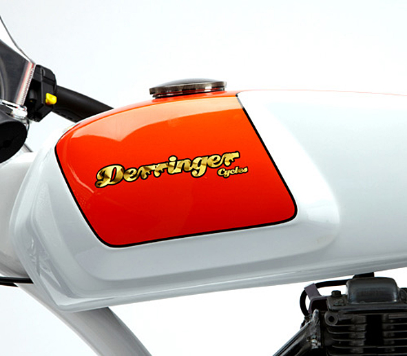 the 2011 bespoke series, see post from the 5th of october, is very successful. great, so DERRINGER went to museum to be displayed. “This special model features a salt flats racer inspired paint scheme with solid white and pearl orange details, it also features a special machined aluminum sprocket and carrier. This bike can be viewed in the Petersen Automotive Museum in Los Angeles, CA during normal business hours.” pics | DERRINGER