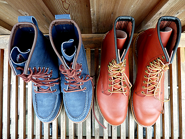 after selling some vintage boots from my collection i owned now the beautiful strictly limited RED WING BOOT STYLE # 2940 which is just available exclusive at RED WING STORES around the world. thx to KAMI from the mother of european RWS stores in FRANKFURT. my wife got the blue 877 numbered STYLE # 8125 as a present from LTG. you can say heritage meets fashion. now the boots are ready to be rugged. bad pics | LTG