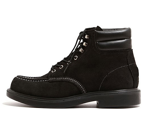 damn, these # 8803 are really awesome. i am a great fan of RWS’ so called “FRANKFURTER” with the famous black SUPERSOLE®; my first RED WING boot ever was a # 8804 i still own. so it is for sure that a black # 8133 has found its way to my boot closet too. since a while i am searching for the beige rough out # 8118 in 9.5D. yesterday my buddy and copywriter PETER told me about a dark grey rough out “FRANKFURTER” he found on a blog site. he told me that this boot would be a result from a collaboration between japanese BEAMS and RWS. so i took a look today at the BEAMS site. and wow, there is not only a dark grey one but another black rough suede too with style number # 8805. what a luck, both are sold out. pics | BEAMS