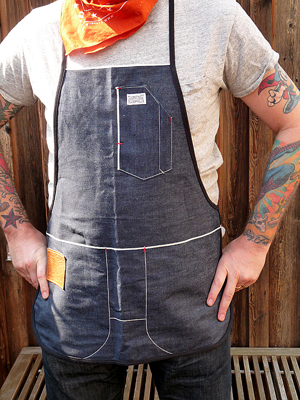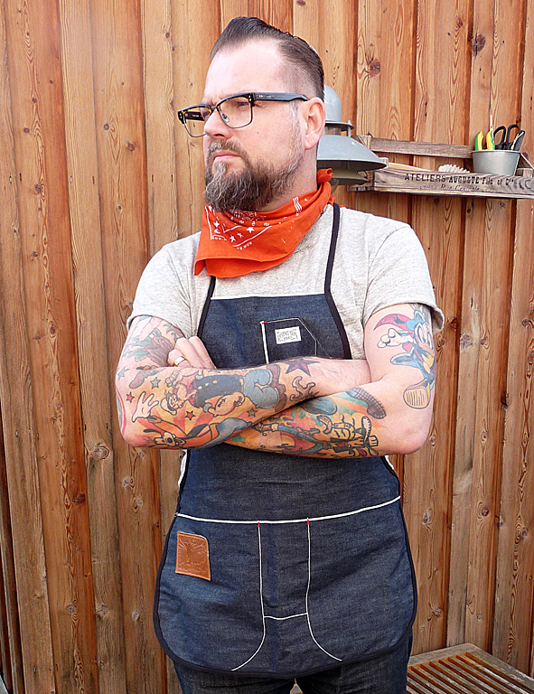 My soulbrother Michael Uhlemann Master Chief of Cuisine M. send me some pics of his new Tellason aprons made of 14.75oz Cone Mills White Oak Denim. The apron is limited to 50 pieces and it was sadly for sure the last Cone Denim production – so something really special! The leather patch shows the “TEN” logo standing for the 10th anniversary of Tellason. “Michael is Tellason”, he is the biggest Tellason fan I know and so it is fantastic that they made an apron that he can use when cooking – maybe they did it especially for Michael 😉 who is already longer a very good friend to Tellason’s Pete & Tony and Distributor Uwe E. Maier c/o Amtraq Distribution, who love his way to cook so much and above all his personality and his loyalty to the brand … do you know anyone who has a “Tellason Wall Of Fame” at home? I know!