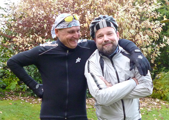 after 1 1/2 year without biking i am back on track. no more road biking but beside running i will do some trips with my ROTWILD mtb the next time for relaxing the legs. today i did a short trip with my copywriter PETER – awesome. the forest and the air, smelling the autumn coming. but it was beginning raining so hard after 15 km and it got so cold – so we turned to go back these 15 km. damn, at the end it was so f***ing wet, freezy and dirty, but it was great to be on the track again. pics | LTG