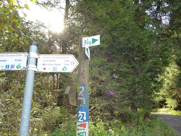 yesterday i did my first post about mountain biking in fulda this weekend. my brother in law HANS and me did just a short tour on friday because of really bad weather conditions. today it was a sensation with the weather: blue skies and no rain; a bit stormy near WASSERKUPPE, RHOEN – just perfect. we drove an old train track straight from FULDA to WASSERKUPPE. really amazing: a long tunnel through complete MILSEBURG just for biker with a lot bats. the tour was really hard for me because this was just my fourth MTB tour after getting out the metal of my shoulder this april. so we made 96 km and for me unbelievable 1.800 meters difference in altitude. and now: so tired … pics | LTG