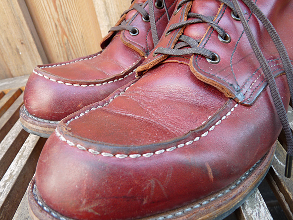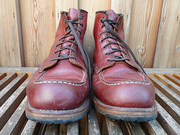 this boot has a crazy story. i bought it in 2006 at RED WING SHOE STORE FRANKFURT. i saw this oro-russet BECKMAN and it was an absolute must-have. i knew this style just in the colors dark brown (the centennial – #1908), black, chestnut featherstone and black cherry featherstone. in 2011 i sold it to my buddy PETER because of an exploding boot closet … WHAT A MISTAKE. always when i saw PETER wearing this boot i got crazy. so i bought it back. since this day i wore my beloved 1912 just 3 times to preserve it. there is no information about the #1912 in the web … nothing. yep, i think i own a really rare and so awesome RED WING BOOT – MY1912 MOC TOE. pics | LTG