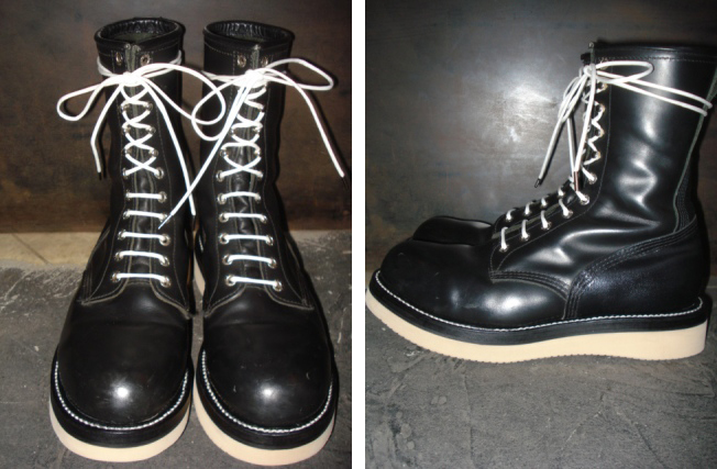… by BRASS, tokyo. the original heavy VIBRAM LOGGER SOLE was replaced by a VIBRAM 2021. i do not know if i like the white bootlaces. here in germany those have a special meaning in the right skin scene … pics | BRASS, tokyo