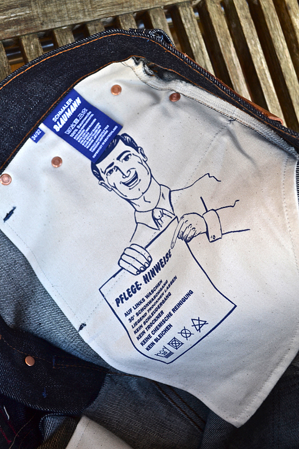 ILLINGEN? never heard about? ILLINGEN is a small village near saarbruecken at the german / french border. maybe you checked my blog posts about MAENNERABEND @ ILLINGEN last november. last week OLI, owner of BREMERICH JEANS, send me a box to check up his newest japanese denim label TCB. this is really something special because TCB is just available at 2 shops in europe: somewhere in UK i think it is LONDON and in ILLINGEN. it’s unbelievable but OLI sold meanwhile 12 FLAT HEAD jeans in small ILLINGEN in the middle of nowhere and so he and his son DUSTIN decided to take one more japanese denim label to their sales range: TCB. this label is producing only these two 5-pocket jeans: a 50s and a 60s cut. both 13.5 oz raw denims are made of zimbabwe cotton in OKAYAMA, japan. the 50s denim is fit loose, a bit more “hairy” and “grained” and not so deep blue. typical are the covered rivets at the back inside pockets and the small red “flag”- really nice! maybe the 60s model is a bit more commercial OLI thinks because of its slimmer fit. and i promise you both models have a great price for japanese denim. check up BREMERICH JEANS or send OLI a mail: info@bremerichjeans.com. pics | LTG