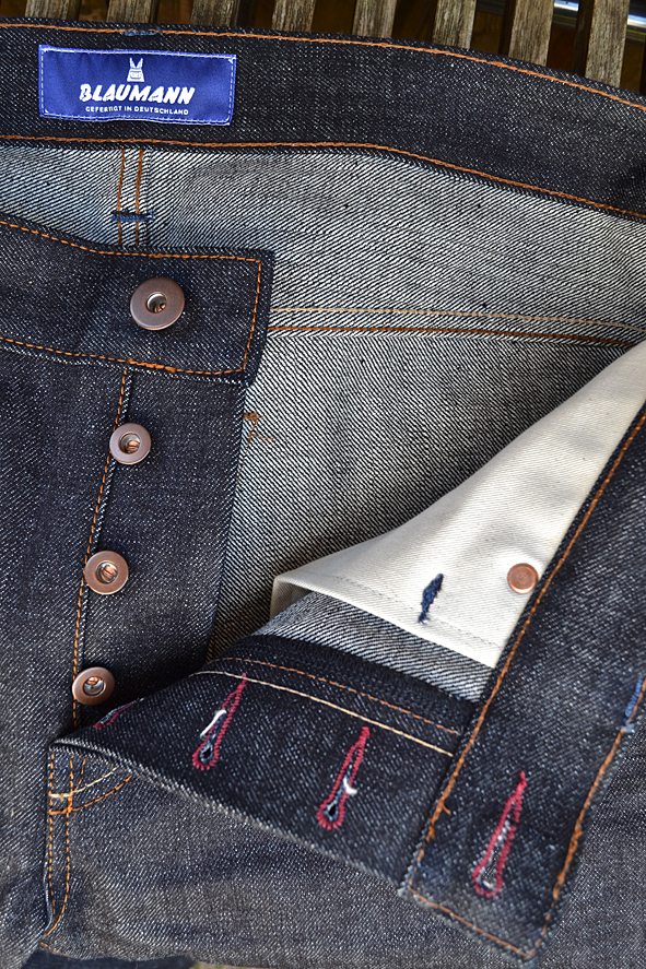 Some days ago my buddy OLIVER BREMERICH c/o BREMERICH JEANS send me a box full of BLAUMANN Products to check these. The word BLAUMANN stands in Germany normally for an easy working overall – or just generally for pure and simple working clothes. At first I thought, okay, for sure another product jumping on this heritage train, just another raw denim jeans … but I was really surprised about this original well done and stand alone German product. The “Schmaler Blaumann”, which means Tapered Fit, is a perfect fitting piece made of 15oz Kuroki Denim woven on shuttle looms from Japan. So: the denim is made in Japan, but the cut and the production, the stitching of the pants is completely done in Germany. All materials except the denim cotton, the tags, buttons, yarns and the lining for the pockets are made in Germany. A great idea while a lot of fuckers nowadays send there stuff to somewhere to produce it with child hands and people earning money under minimum wages. The pants are available in 32 and 34 inch length but are about 11 cm longer because these shall be worn with a turn up. It would be shame not to show the wonderful selvage stitch. Okay the price is not the lowest, but for a raw denim more than acceptable compared to others. Check the pics for wonderful details the BLAUMANN men put to their product … I like this a lot! With the raw denim shirt named “SCHMALES BLAUMANN-HEMD”, which means slim fit shirt, is made of 8oz Kuroki denim and all the other materials are made in Germany too. It is manufactured in Oberpfalz, Germany like the pants. For more information about the products please check: www.blaumann-jeanshosen.de or call Oliver directly +49 177 4843400. He is a japan denim maniac and expert. pics | LTG