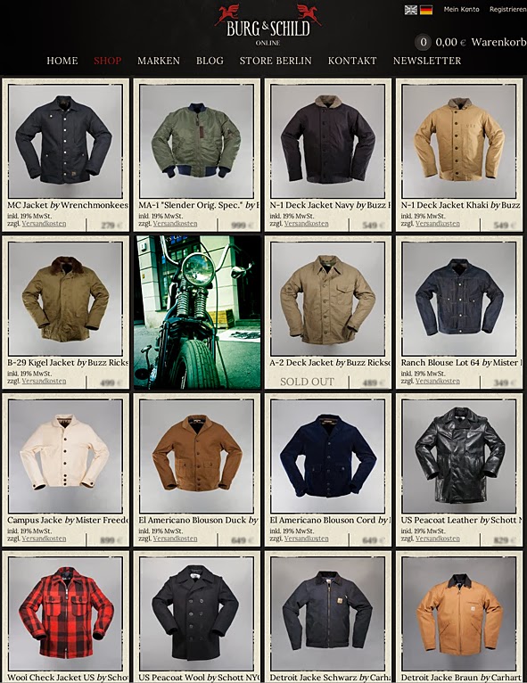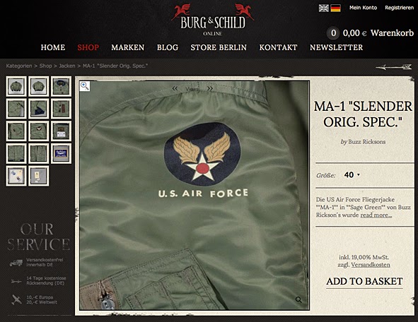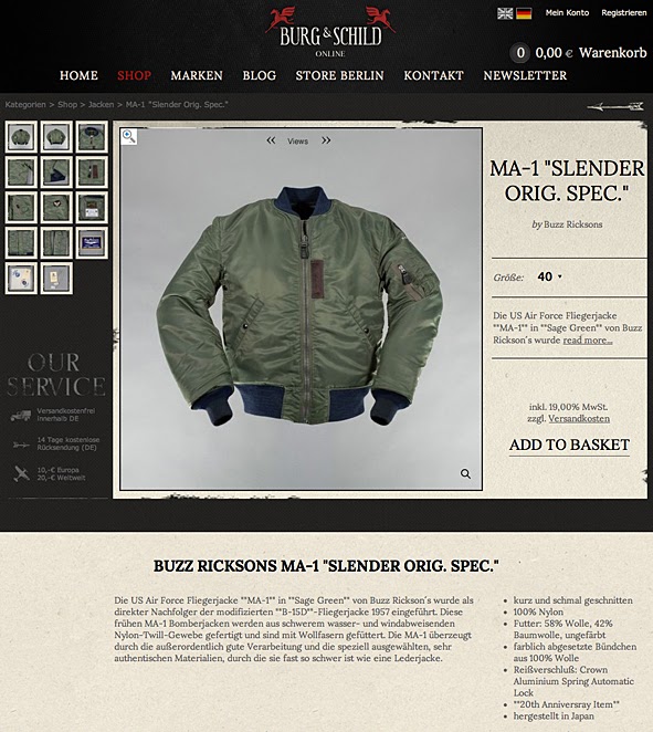 okay it is 4 weeks ago that the BURG & SCHILD webshop went online. but it is like it is: less time for me to do the blog posts i wanted before and after christmas because of heavy working. so here we go. searching for a MA-1 jacket from BUZZ RICKSON or REAL McCOY’s i stopped at the new B&S shop, which is really succeed. well done and perfect fitting for the brands and the guys behind BURG & SCHILD. with a rocking and biking attitude, no fashion and pussy affection. straight graphics and wonderful detailed pics f.ex. of this great MA-1 20 years anniversay BR jacket. very nice the small category drawings grey on black – like them very much! SHANE: compliment – you and your guys, your online and graphic team did a very good job. and now take a look at the jacket. isn’t it great? pics | BURG & SCHILD