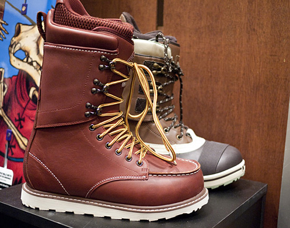 yes guys. to complete your rugged snowboard look these pieces are the right stuff for you. months ago i posted the BURTON x RED WING SHOES snowboard boot collaboration. the boot is now available at f.ex. b-74, frankfurt. and the CARHARTT snowboard jacket and trouser should be available soon in selected stores around the world. i found the jacket at austrian BLUE-TOMATO for 300 euros. i think this jacket is not only wearable on the board. it seems to be a cool winterjacket with a lot of high-tech details and lifetime guarantee with a great traditional attitude! the stuff is available in black and classic duck brown – my favorite. pics | carhartt-wip