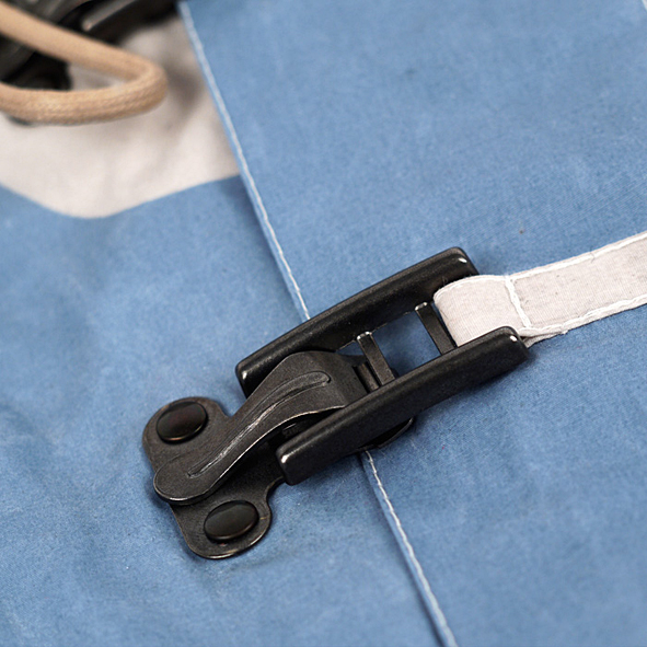 clasps on top, 4 pocket design with metal buttons, 100% beeswax cotton, made in scotland.