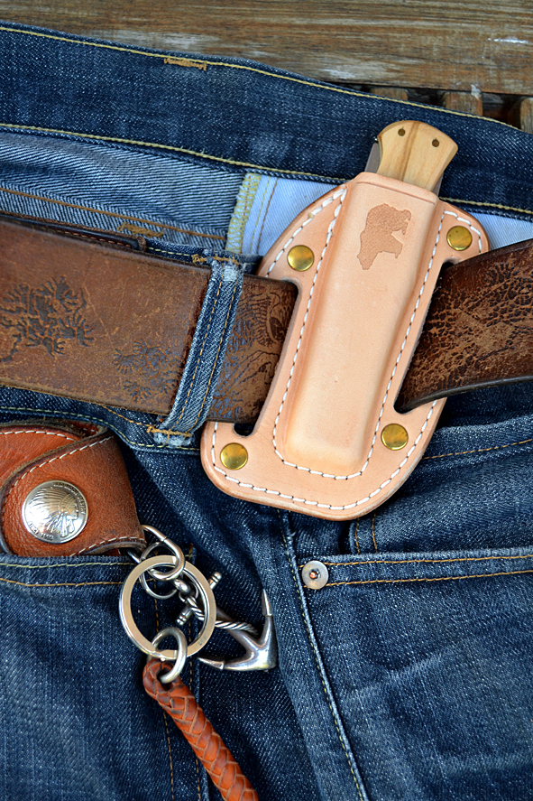 I own a lot of knives but not such a nice combination: The ONDURA pocketknife with its so well done pancake holster – an absolute must have for men loving knives, collecting knives … The knife is a simple classic German pocketknife, which was developed and produced by famous OTTER-Messer Company in Solingen/Germany. For ONDURA it was really important to get a knife which is made complete traditionally here in Germany. The blade length is 100 mm and made of carbon steel. For safety reasons it is fitted with a backlock. The handles are so nice to touch – in German we call this a “Handschmeichler” –, these are made from olive wood with a nice texture. The brass ONDURA bear in the inlay is not just nice to watch: the bear on the knife and the bear on the holster must be covered by each other – there is only one way to put the knife into the holster: bear over bear. This works perfect! The “pancake” holster is made of two 4mm thick vegetal tanned leather layers It is clued, sewed and riveted, mould and decorated with the ONDURA bear branding. The edges are brushed and polished. ONDURA offers also the perfect belt for the holster, the Workman Belt in tan. But I think it fits my vintage DUKES belt as good … Now the holster must age in daily use … exciting about the look it will get. Guys, this must be one thing written to your x-mas list – time is running 😉 pics | LTG