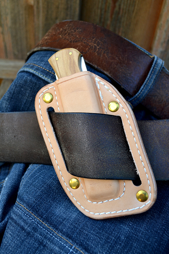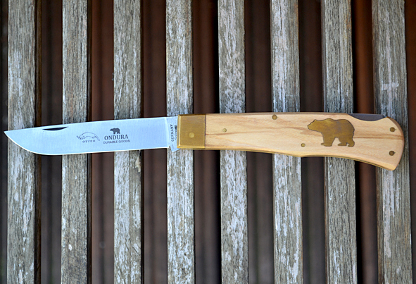 I own a lot of knives but not such a nice combination: The ONDURA pocketknife with its so well done pancake holster – an absolute must have for men loving knives, collecting knives … The knife is a simple classic German pocketknife, which was developed and produced by famous OTTER-Messer Company in Solingen/Germany. For ONDURA it was really important to get a knife which is made complete traditionally here in Germany. The blade length is 100 mm and made of carbon steel. For safety reasons it is fitted with a backlock. The handles are so nice to touch – in German we call this a “Handschmeichler” –, these are made from olive wood with a nice texture. The brass ONDURA bear in the inlay is not just nice to watch: the bear on the knife and the bear on the holster must be covered by each other – there is only one way to put the knife into the holster: bear over bear. This works perfect! The “pancake” holster is made of two 4mm thick vegetal tanned leather layers It is clued, sewed and riveted, mould and decorated with the ONDURA bear branding. The edges are brushed and polished. ONDURA offers also the perfect belt for the holster, the Workman Belt in tan. But I think it fits my vintage DUKES belt as good … Now the holster must age in daily use … exciting about the look it will get. Guys, this must be one thing written to your x-mas list – time is running 😉 pics | LTG