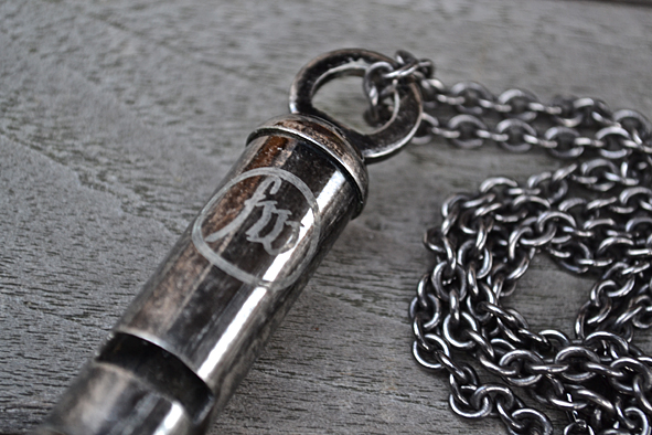 There are 4 different sorts and 2 sizes of whistles: Chrome, Gun Metal, Vintage Gold and Black. I am really proud to own a FW of the first generation. My gun metal whistle has number 046! I use a massive anchor chain by PATRIK MUFF that correspondents perfect to the gun metal whistle. All orders are shipped out from Sweden, so that European future whistler-blower can get their FW just in time before Christmas. It is great to buy such an awesome tag and at the same time to support the peace project in Congo. BE A WHISTLE-BLOWER FOR PEACE! pics | LTG and FW