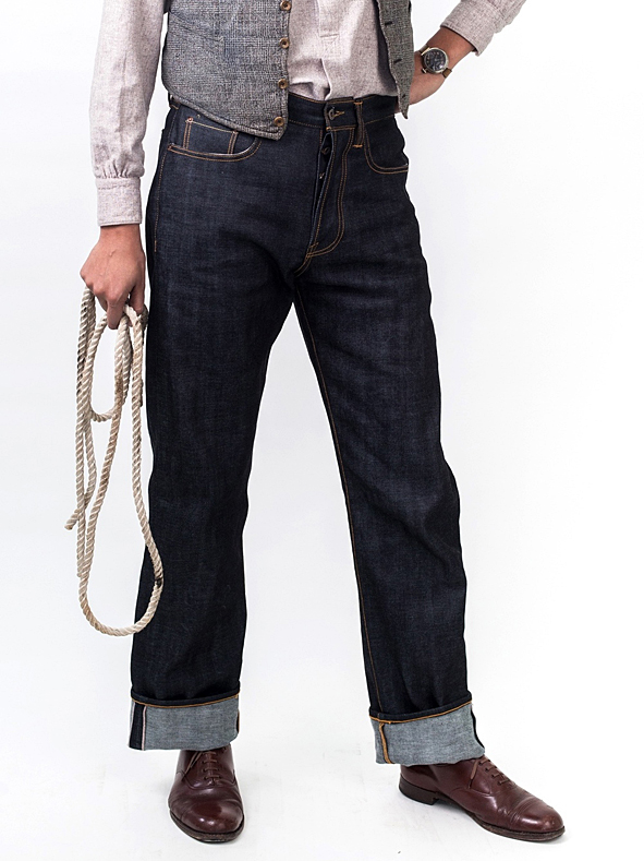 Normally one post a day, but when i checked up the SJC site I found this offer. I ordered my pair @ once … there are just 49 left or maybe 33 or 17? … hurry up. SJC is offering these amazing high rise wide leg 1930’s cinch jeans for silly money. Why? He wants you to be the FIRST to get true period correct, hand crafted, raw denim for a steal. pics | SJC