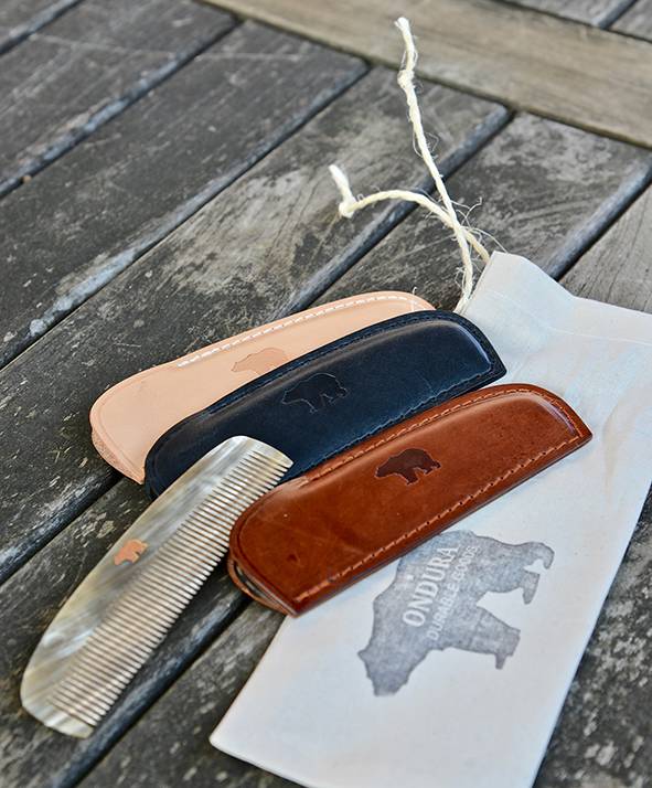 Every morning after I pulled on my Tellason denim, I put a knife into the right front pocket and a comb to the left back pocket. As using pomade daily a good working comb is a-must-have for me. And since decades I am looking for the perfect comb. Sometimes I thought I found the one I was looking for, but I was never perfectly satisfied. But since I got my Ondura Durable Goods combs I think I can stop looking for the perfect comb. The combs lie perfect in the hand and it makes me every time smile when I use one of these beauties, because they work best. Not to heavy, not to light – just perfect. The combs are made of real horn and each one is unique by its color, signed with a small Ondura logo on one side. And what I like most is that every comb comes in a special leather case. I can’t stop touching these … The cases are available in 3 color ways: tan, brown and black and I can’t tell you what I like most. They are made of 1.5 mm thick high quality natural vegetable tanned calf leather. Very nice! I am really excited about the patina the cases will show by using them hard. You can feel that this comb and case combination is made to last. And the size is perfect too: 15 cm x 5 cm x ca. 1 cm fits every back pocket very well. This is what I mean when I am talking about “LIFE TIME GEAR”! You’ll find these and other great stuff at: www.ondura.de