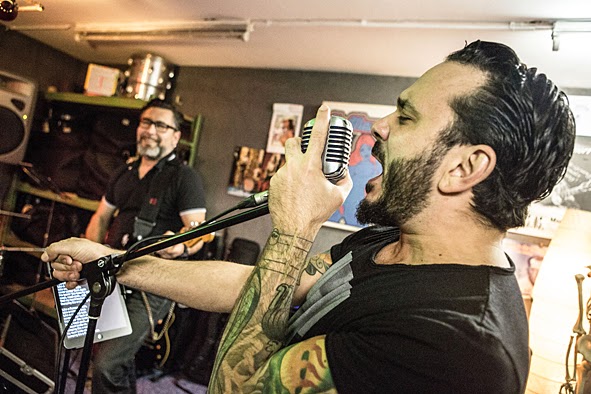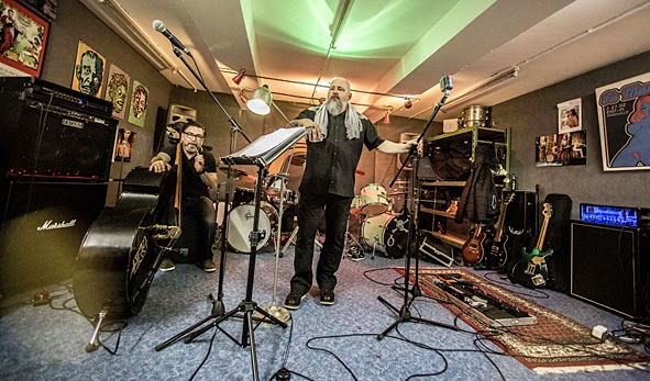 this week i joined the rehearse of a new band with the working title THE JONHZ. my buddy and barber OLLI THE BARBER is the double bass player of this damn f**ing great rockin’ band. they just did a few rehearsals but it was so powerful and cool – really impressing. TOM (guitar), KONRAD (drums), LAZI (vocals & rhythm guitar) and OLLI will rock the clubs next time  – for sure. they do a kind of let me say rockabilly mixed up with a lot of other elements from hardcore, metal and pure rock’n’roll – it rocks at all. LAZI is a great singer and seems to be the perfect frontman. i am really excited to see their first gig. funny, from 2003 to 2005 i played the drums in the same room with the band called “ARMSTRONG” where OLLI THE BARBER was the singer. long time ago … thx CHRISTIAN GRAU for the great pics! pics // Christian Grau